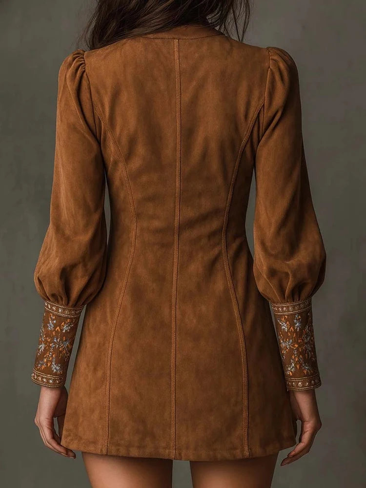 • Long puff sleeves: embroidered cuffs add volume and a feminine finish